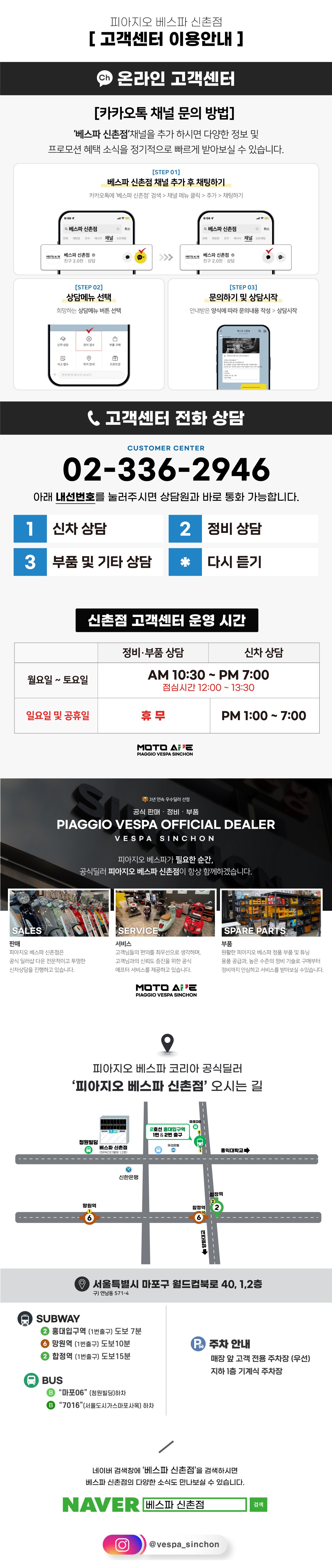 베스파 신촌점 카카오 채널을 통하여 가능합니다.